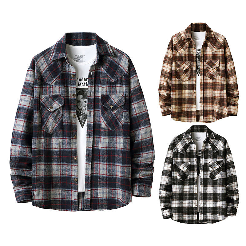 Men's Long Sleeve Flannel Plaid Shirt Jacket