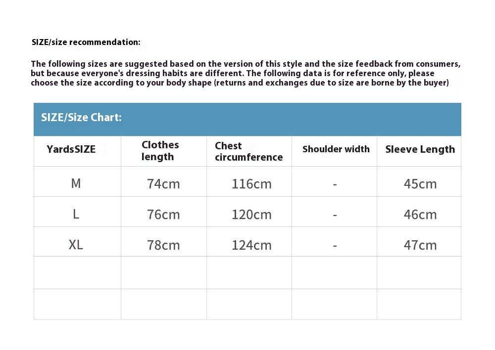 Note: 1. Asian sizes are 1 to 2 sizes smaller than European and American people. Choose the larger size if your size between two sizes. Please allow 2-3cm differences due to manual measurement. 2. Please check the size chart carefully before you buy the item, if you don't know how to choose size, please contact our customer service. 3.As you know, the different computers display colors differently, the color of the actual item may vary slightly from the following images.