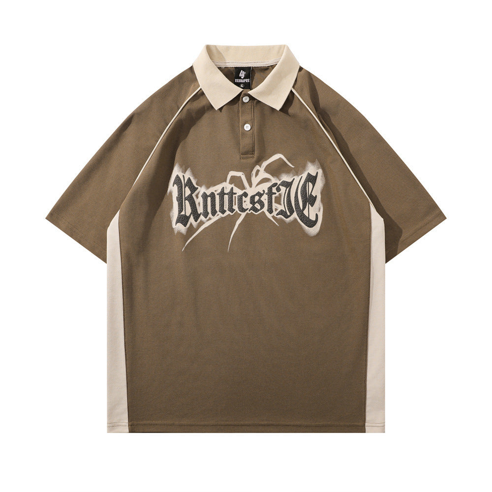 Spider Letter Print Short-sleeve Polo Shirt Men